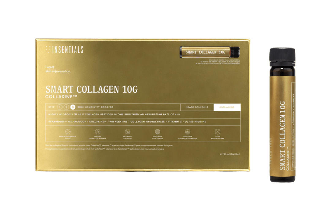 COMBINEER Insentials Smart Collagen SHOT (1x 's morgens) met de Insentials DETOX BOOST (1x 's avonds) voor optimalisatie van je eiwitmetabolisme. Denk aan een volledige wetenschappelijke aanpak.