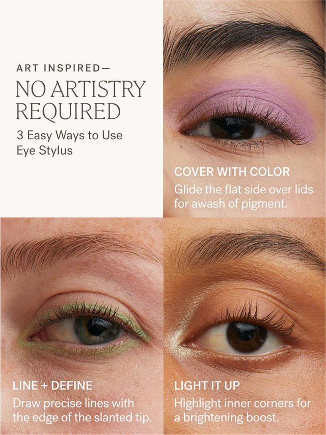 Geef je eigen draai aan feestelijke beauty. Deze limited edition oogschaduwset bevat drie mini Eye Stylus Shadow Sticks, elk met een schuine punt om te omlijnen, te definiëren of oogleden te bedekken met kleur. De rijke, waterproof oogschaduwformule glijdt soepel over de huid, is gemakkelijk te blenden en blijft 12 uur zitten. Deze feestelijke set met door kunstenaars ontworpen lint is perfect om cadeau te geven - inpakken is niet nodig.