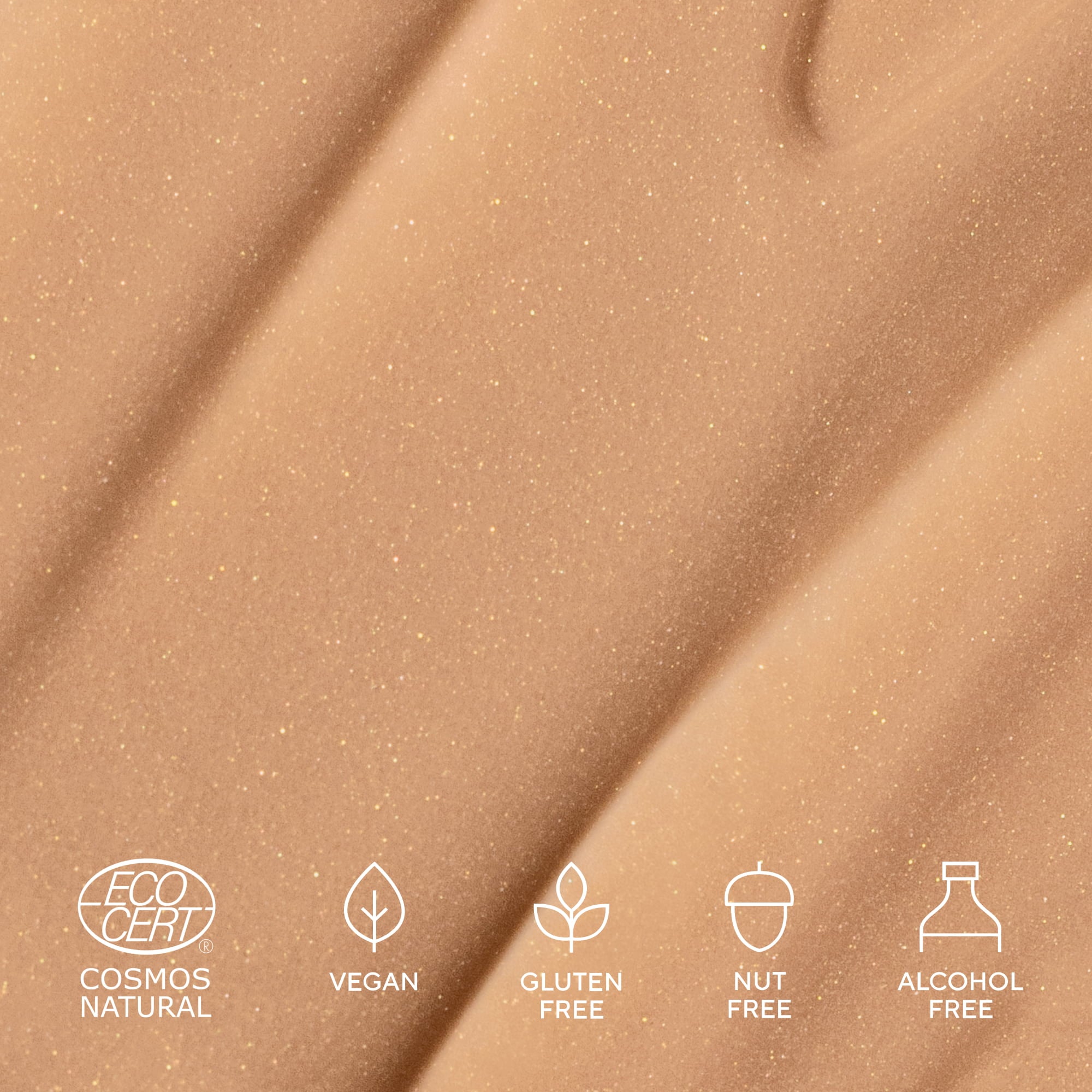 De hydraterende formule zorgt ervoor dat uw huid de hele dag gehydrateerd aanvoelt, terwijl huididentieke pigmenten en glinsterende minerale deeltjes dat beetje extra glans toevoegen.