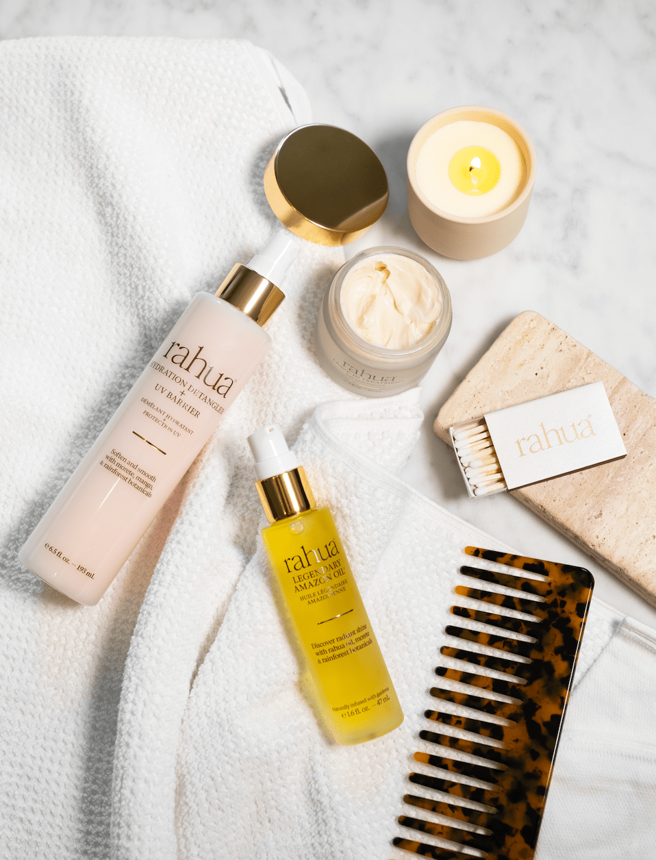 RAHUA (UNGURAHUA): Amazon women have depended on the oil of this tree nut for centuries to nourish and strengthen their hair. It strengthens weak, damaged strands, nourishes and maintains hair follicle and scalp health, and its superfine molecules push color pigmentation deep into the hair shaft, significantly extending color life. We use Symbiotic® * Rahua.