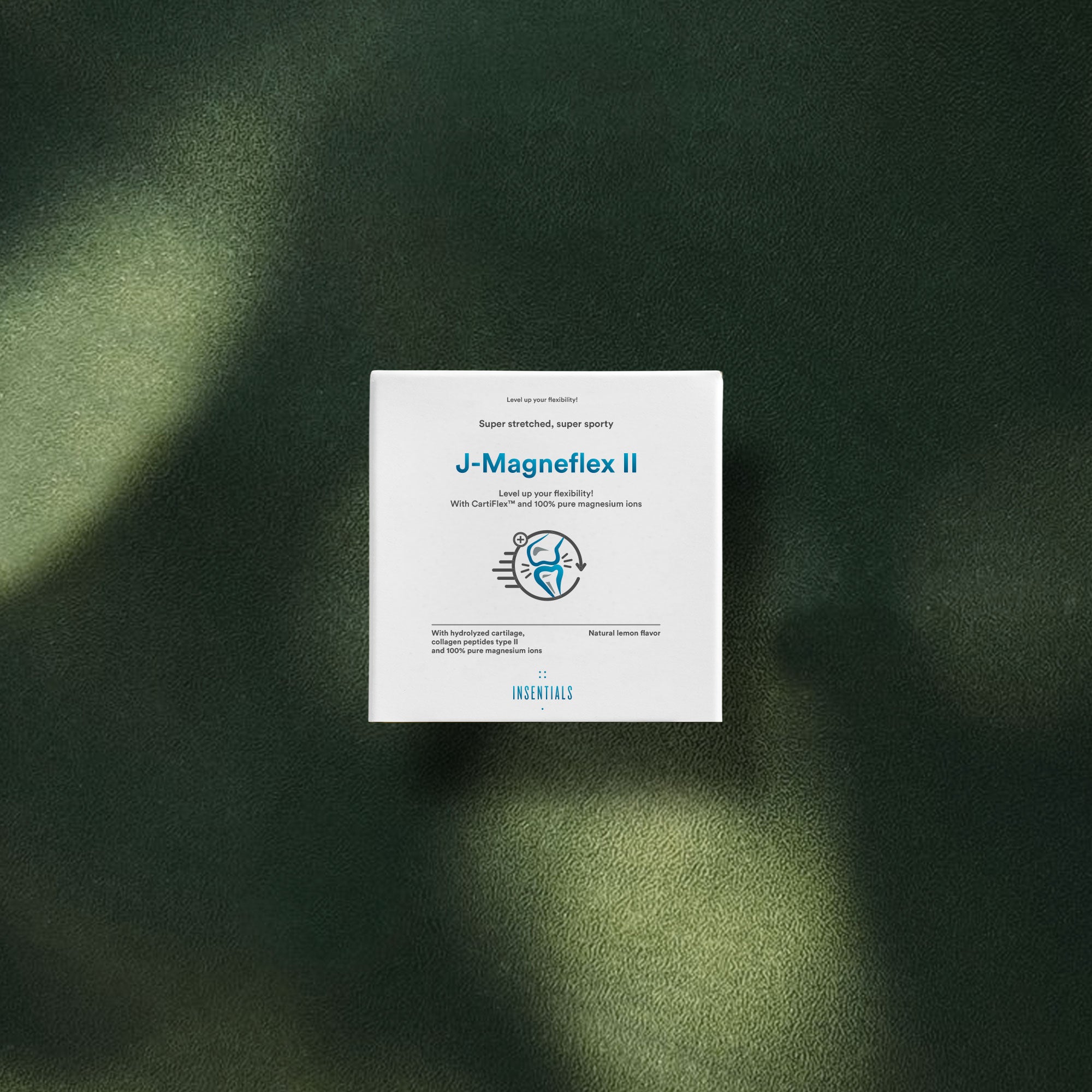 J-Magneflex II est votre dose quotidienne 3 en 1 idéale pour les personnes qui font régulièrement de l'exercice ou qui mènent une vie active. Elle contient du collagène de type II et de la glucosamine pour la santé des articulations, ainsi que des ions magnésium¹ qui contribuent au bon fonctionnement des muscles et des os, à l'équilibre électrolytique et au maintien d'un bon niveau d'énergie¹.